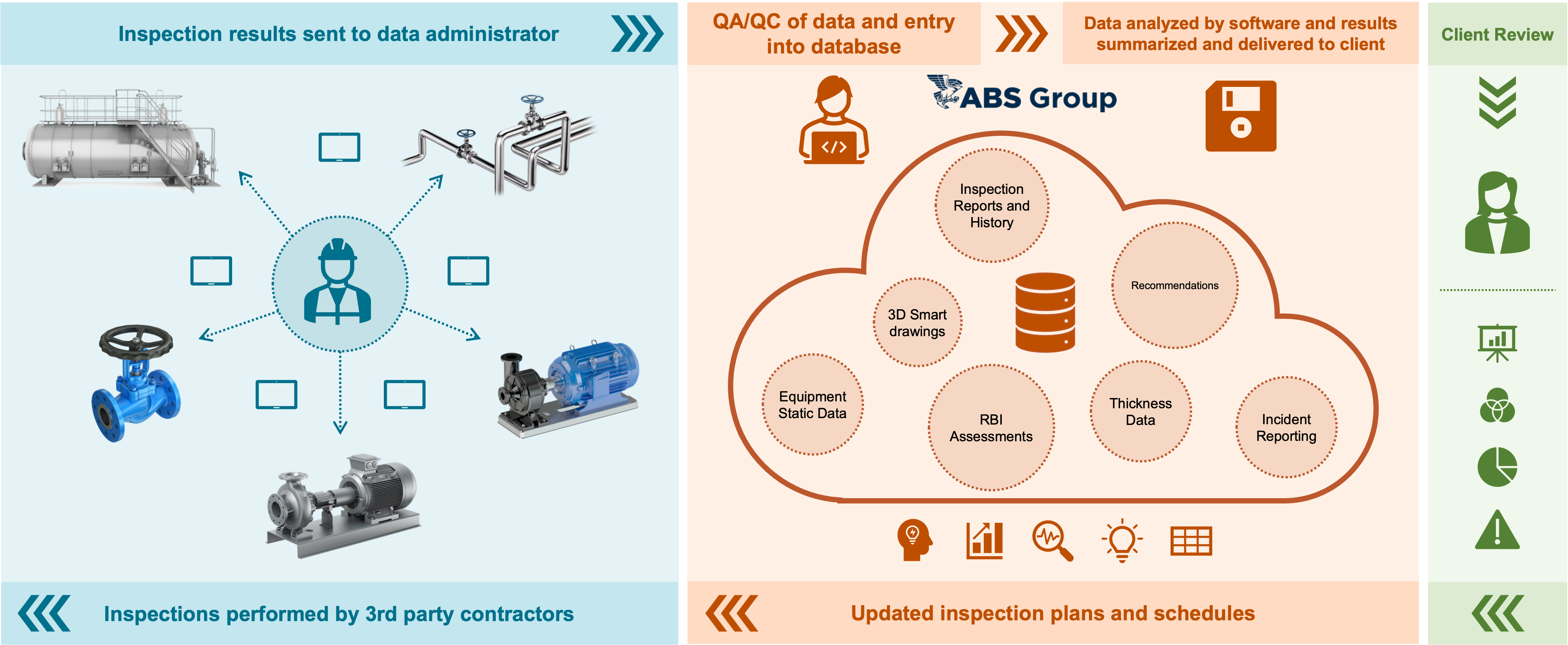 ABS Group has combined its technical engineering expertise with Metegrity’s industry-leading Visions Enterprise® software to deliver sustainable asset management programs to clients that enhance compliance and optimize asset performance. Clients gain access to a broad range of technical experts, a low-cost entry point for enterprise IDMS, optimized inspection and maintenance planning, improved visibility and trending and benchmarking of asset condition – ultimately reducing asset downtime.