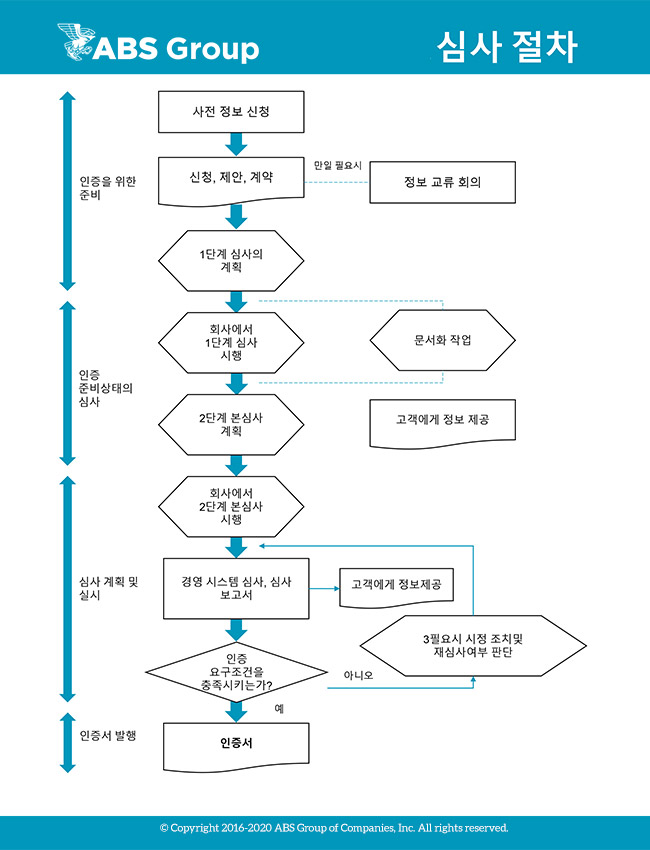 고객이 제공받은 서비스에 대해(계약 건당) ABS QE에게 송장을 지불하지 않거나, ABS QE의 심사원에게 심사 목적의 인증 시설에 대한 접근 권한을 제공하지 못하는 경우에도 인증 철회될 수 있습니다.